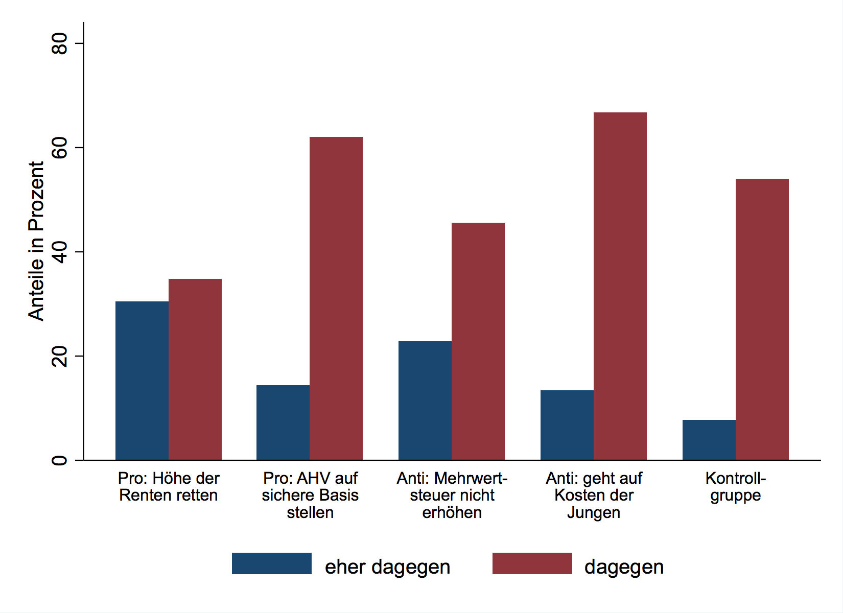AHVplus_dagegen Published August 5, 2017 at 1650 × 1200 in Altersvorsorge 2020: Welche Argumente stechen? Abbildung: Einstelllungen zur Rentenreform bei Personen, welche gegen die AHVplus-Initiative gestimmt haben, nach Experimentalgruppe (N=106)